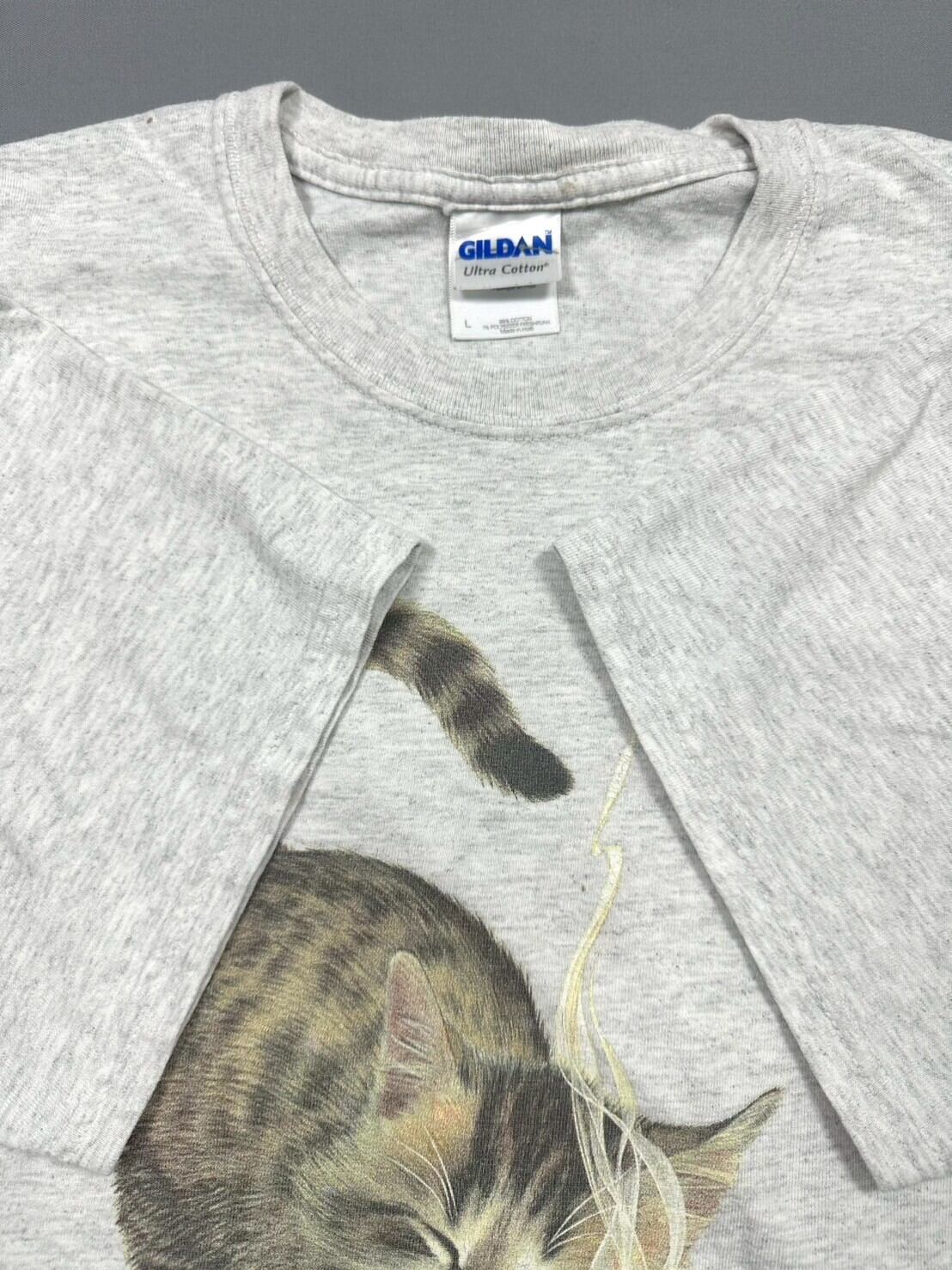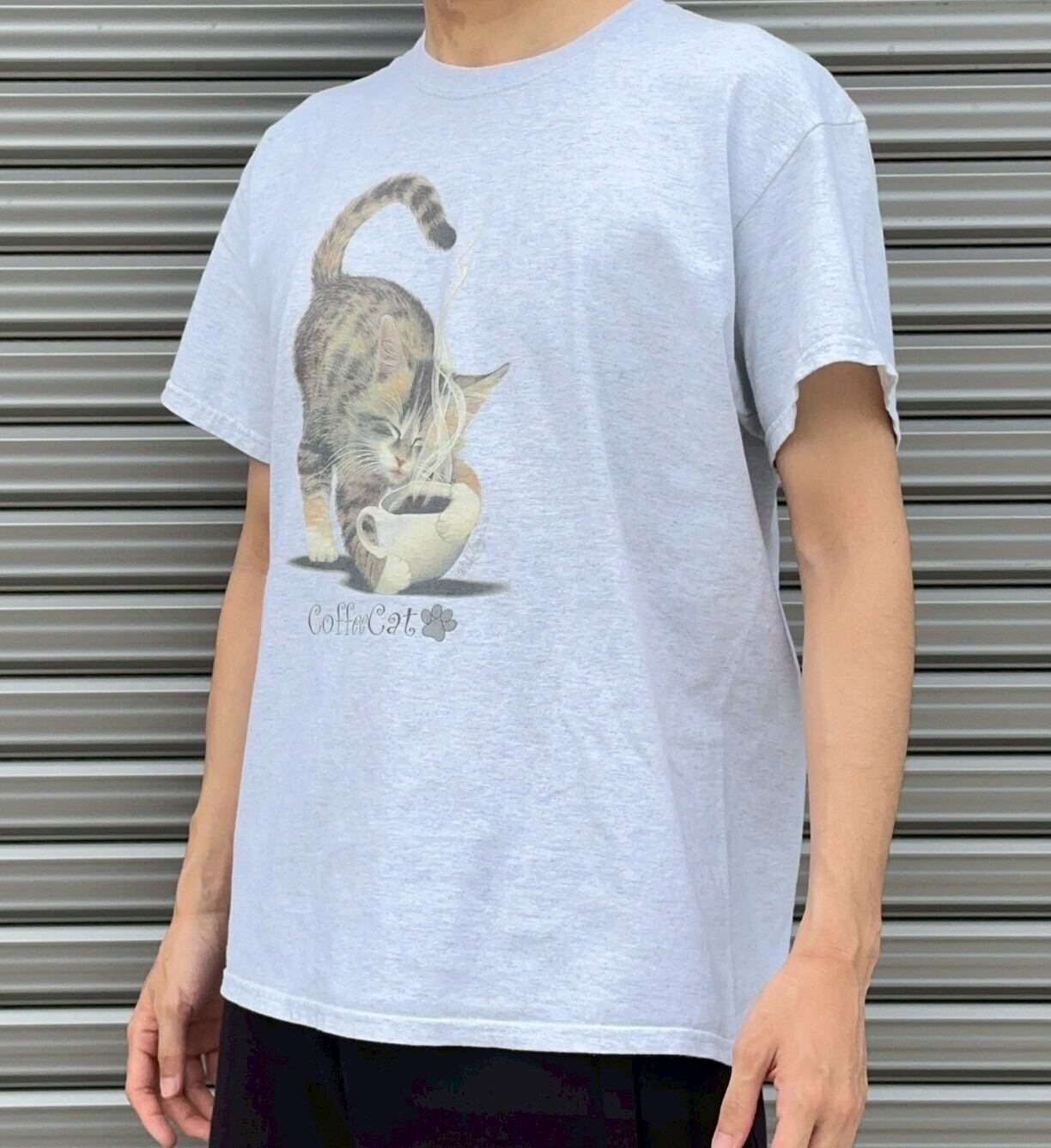 コーヒーの香りを楽しむ猫が愛らしい、癒し系プリントTシャツ